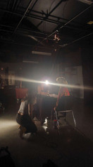 The overhead pepper was rigged on the ceiling rig and wrapped with black wrap to create a very directional light source. It was also put on a dimmer to control the intensity of it.